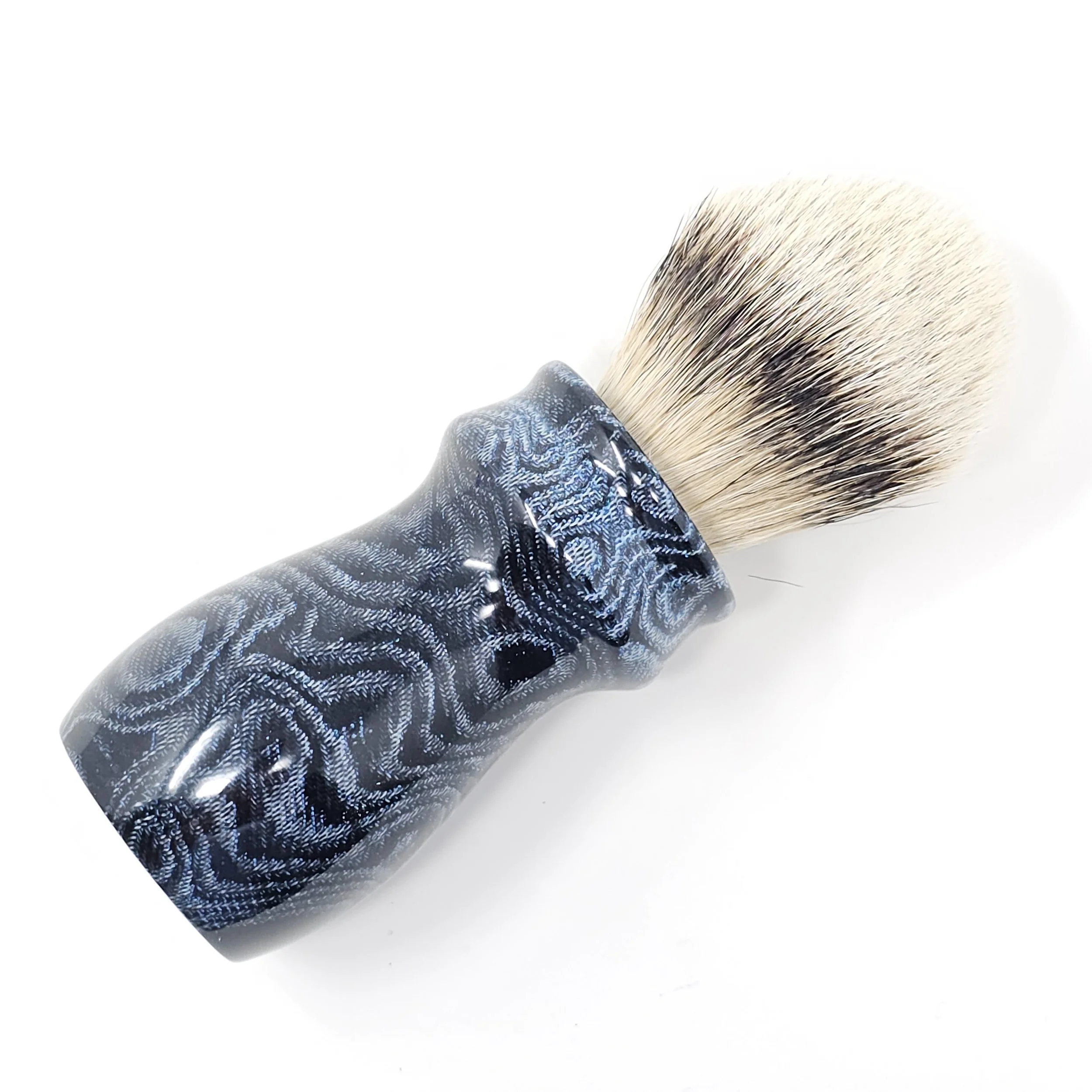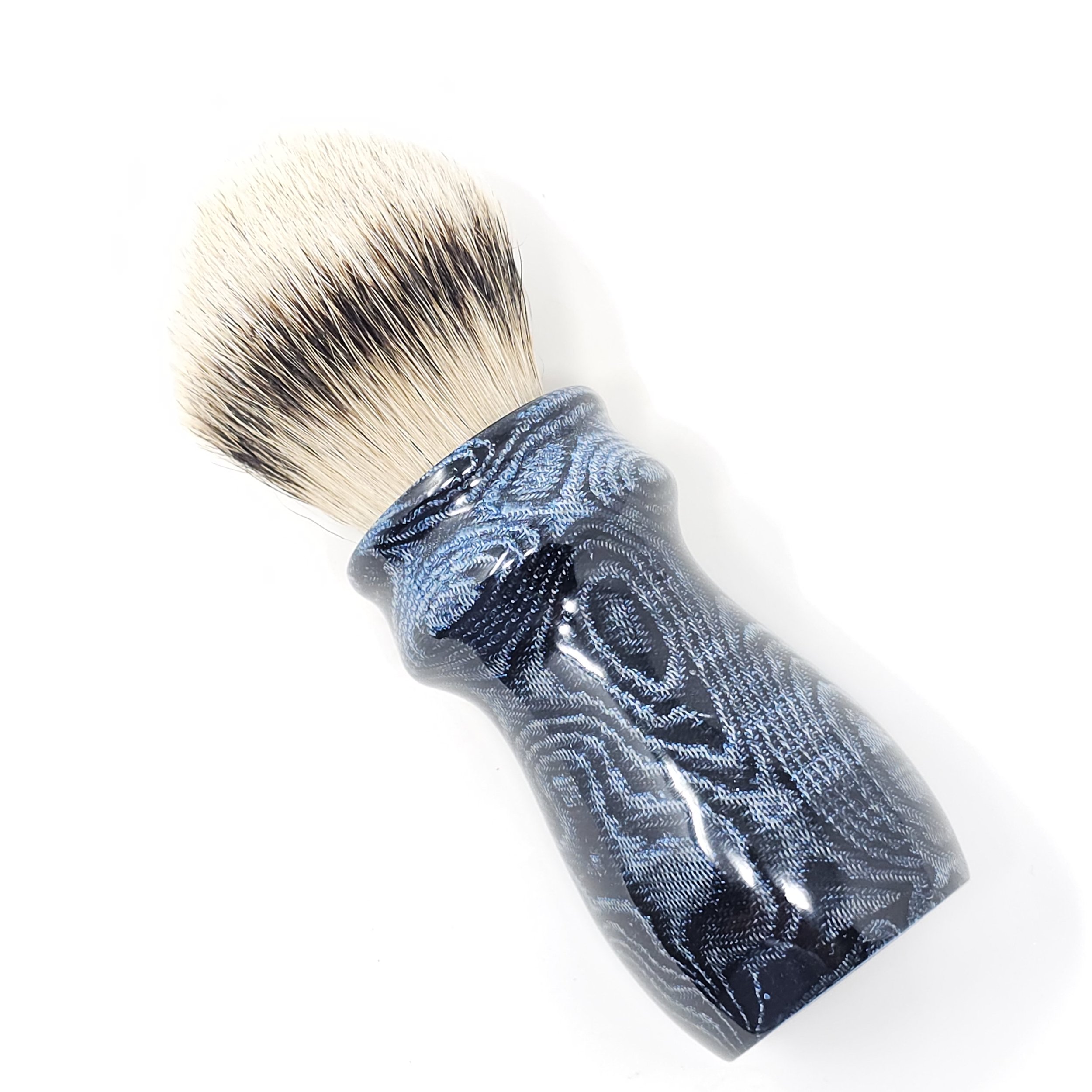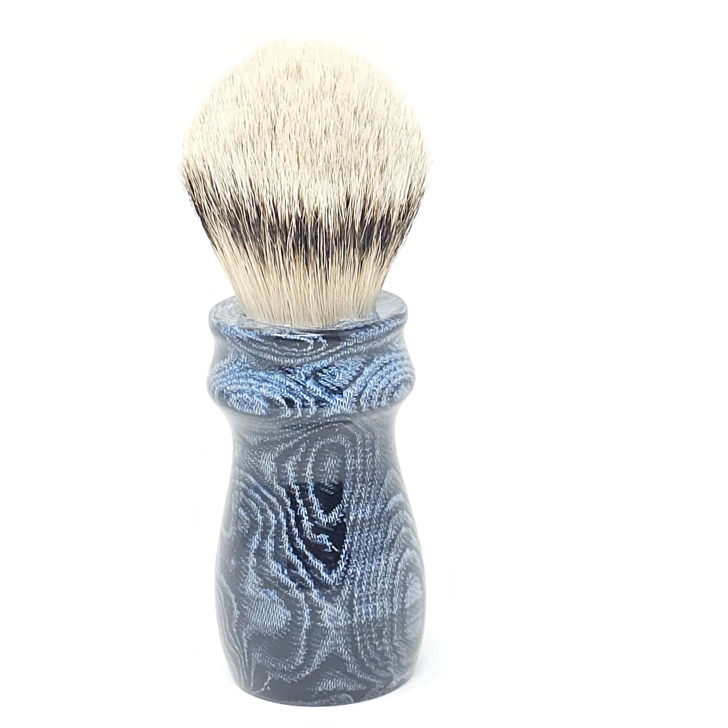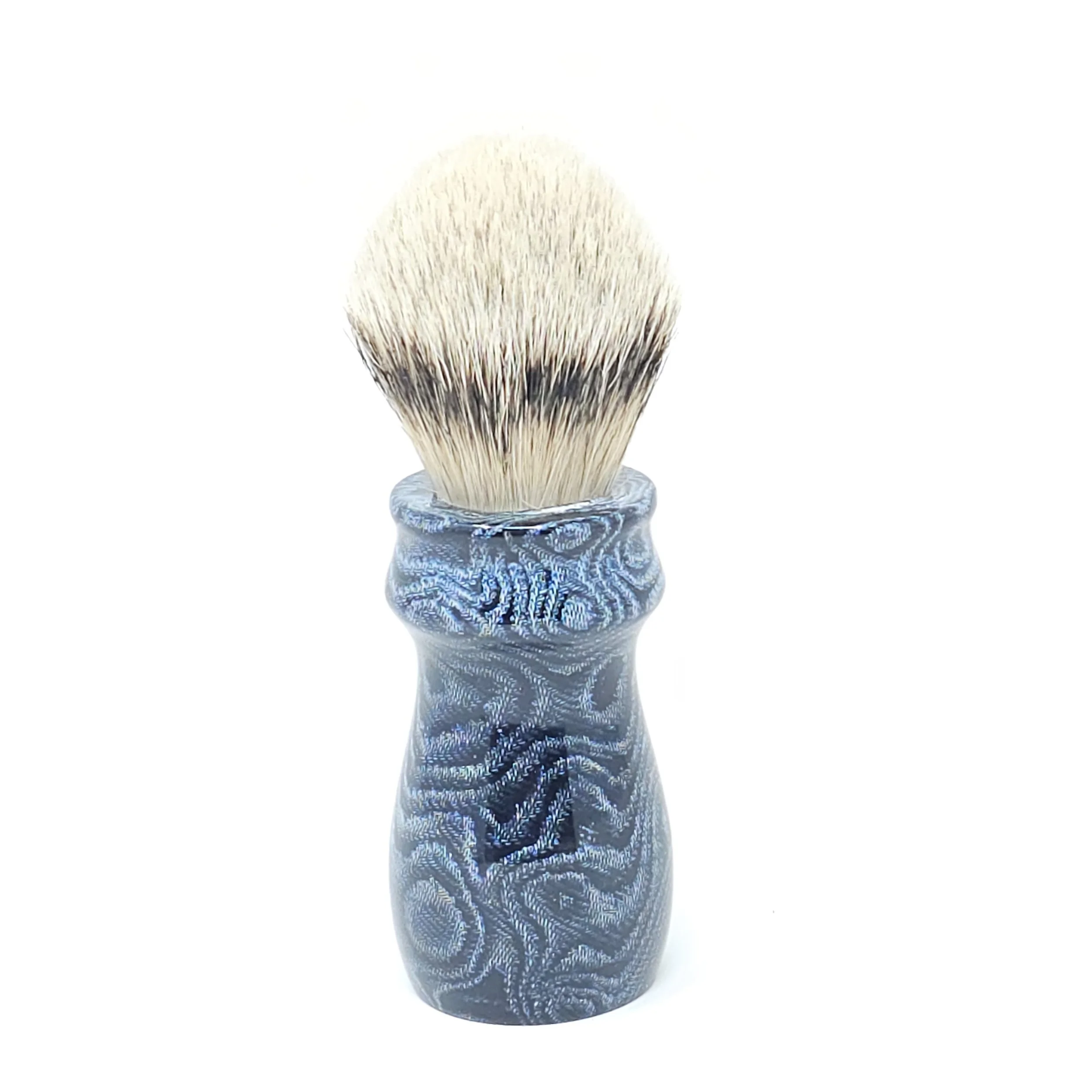 This one of a kind handle is made from upcycled blue jeans, offering a unique, eco-friendly solution to traditional brush handles, while maintaining durability and a stylish, rugged appearance. This brush is not only a statement piece but also a testament to sustainability in your grooming routine.