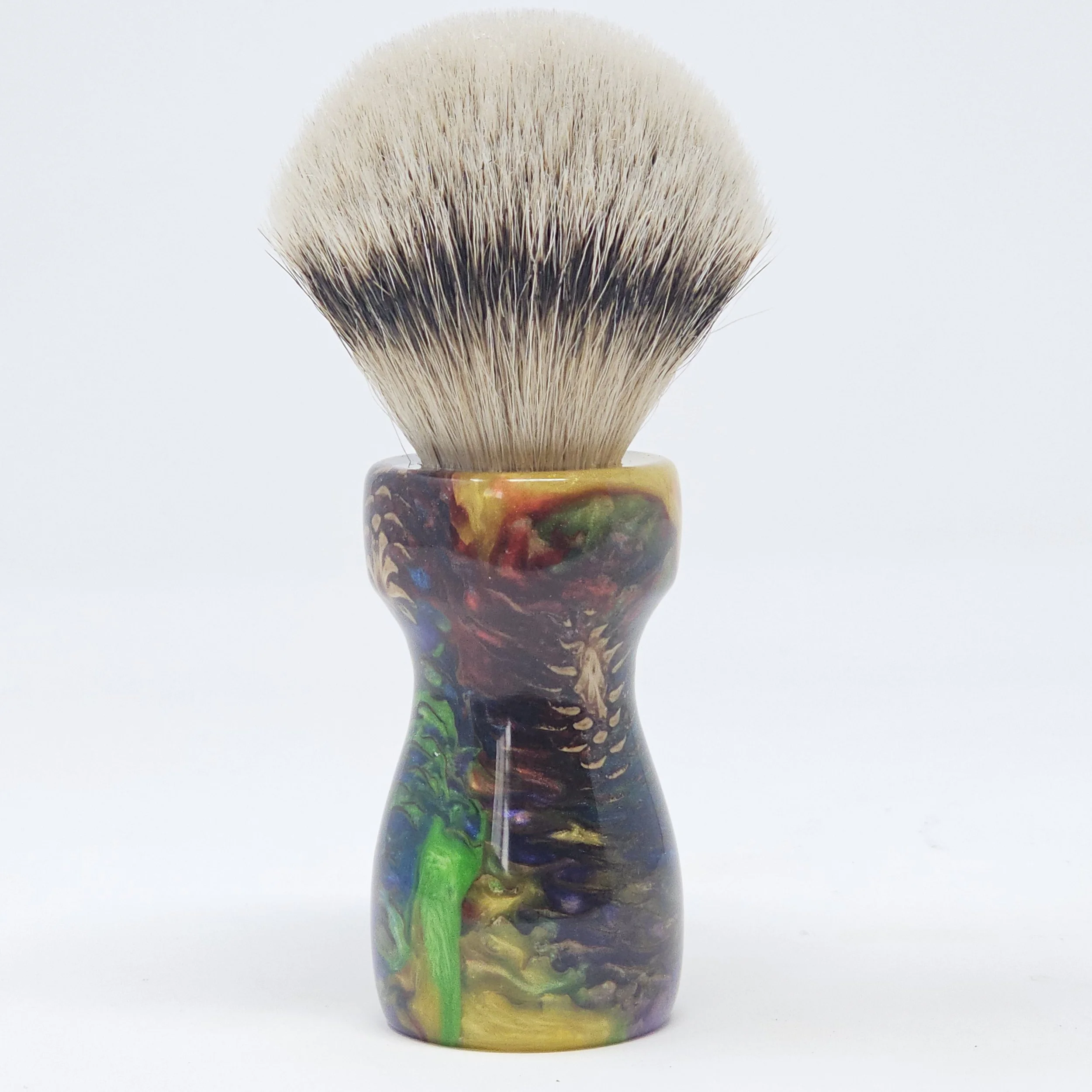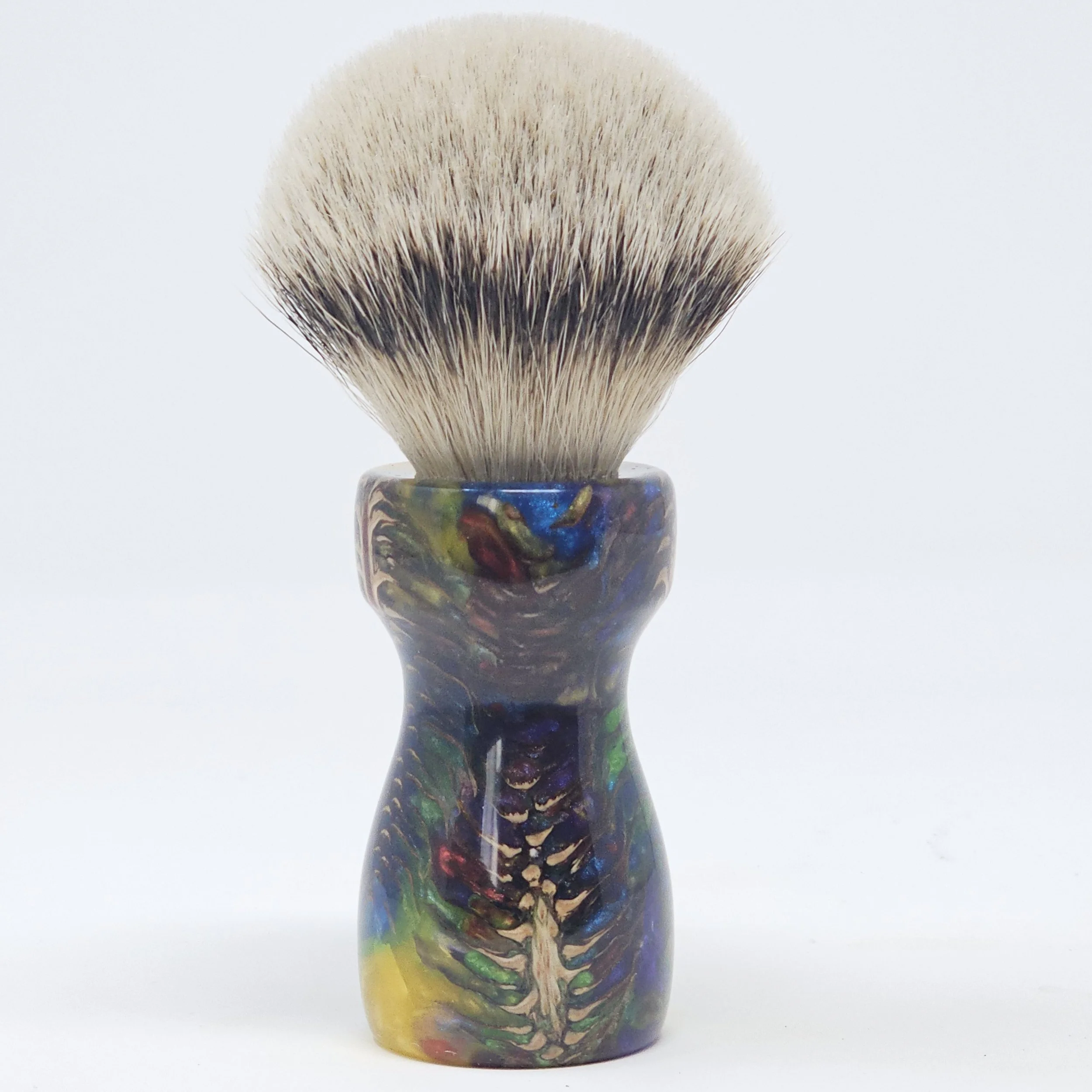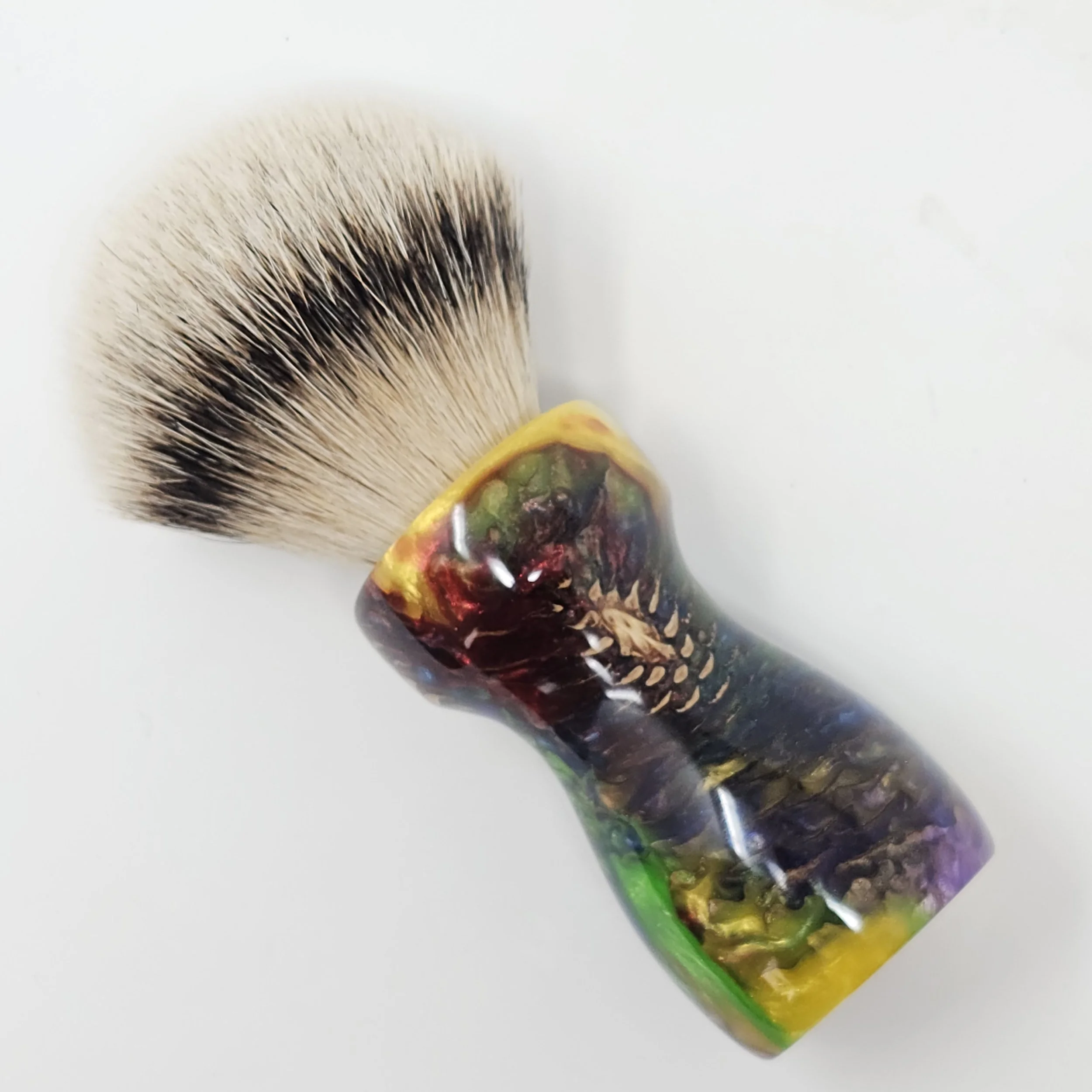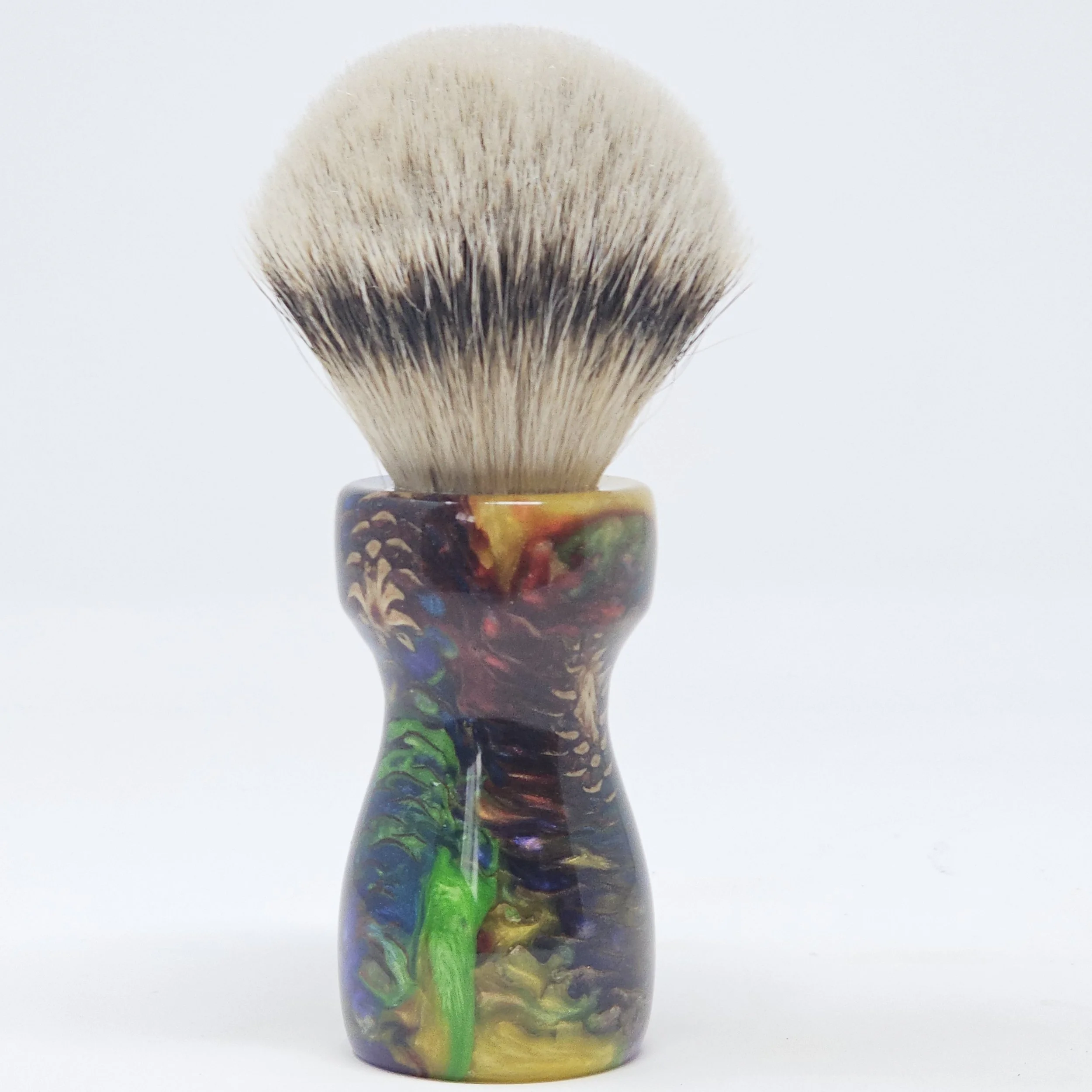 Handcrafted from real pine cones suspended in a vibrant swirl of rainbow resin, the Prism Pine brings the wild beauty of nature together with bold, modern color. This is a one-of-a-kind shaving brush... never to be duplicated!
