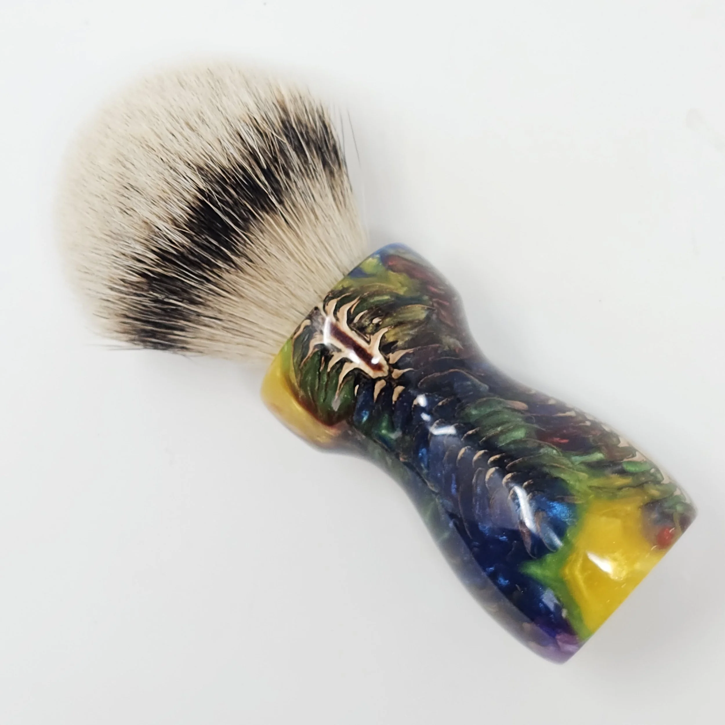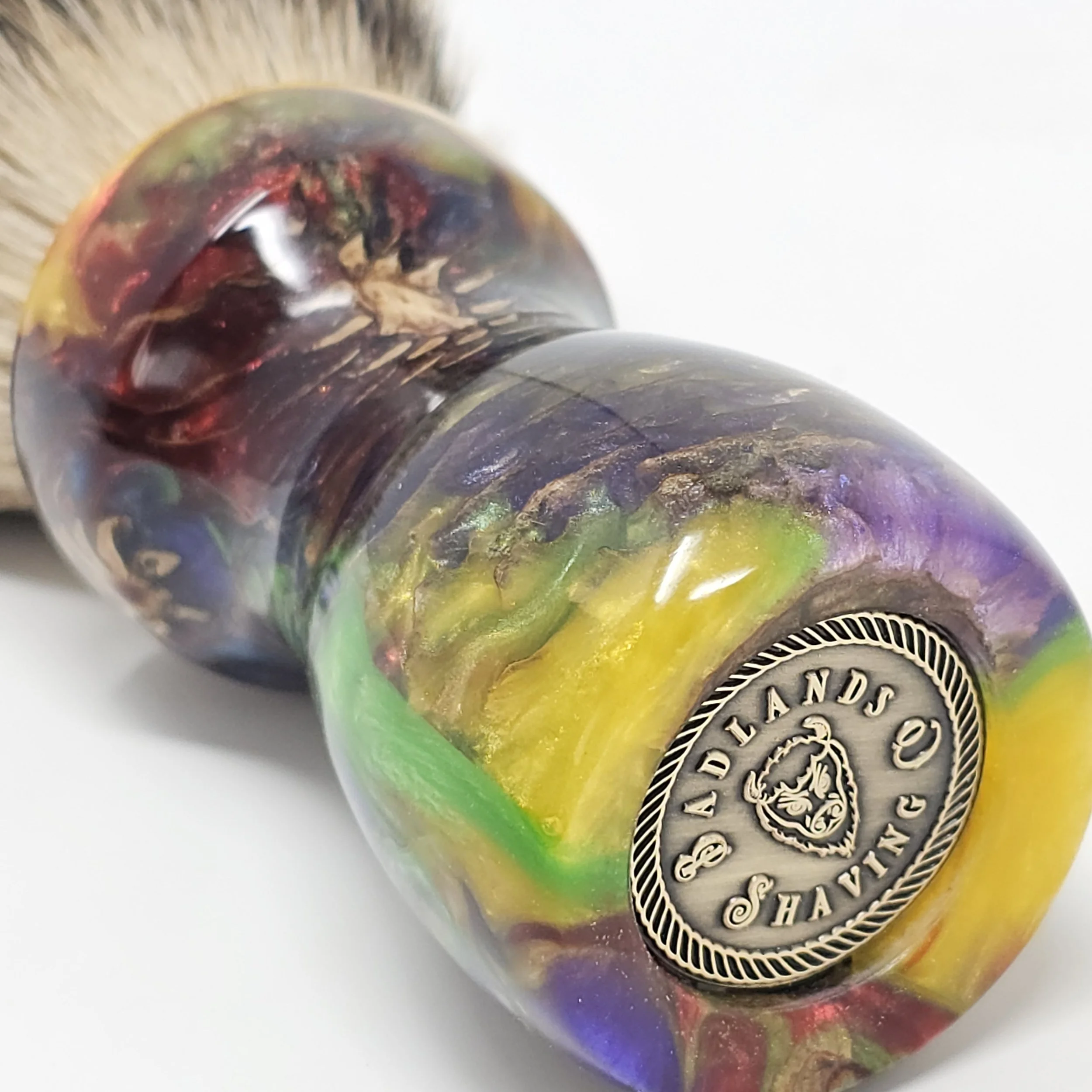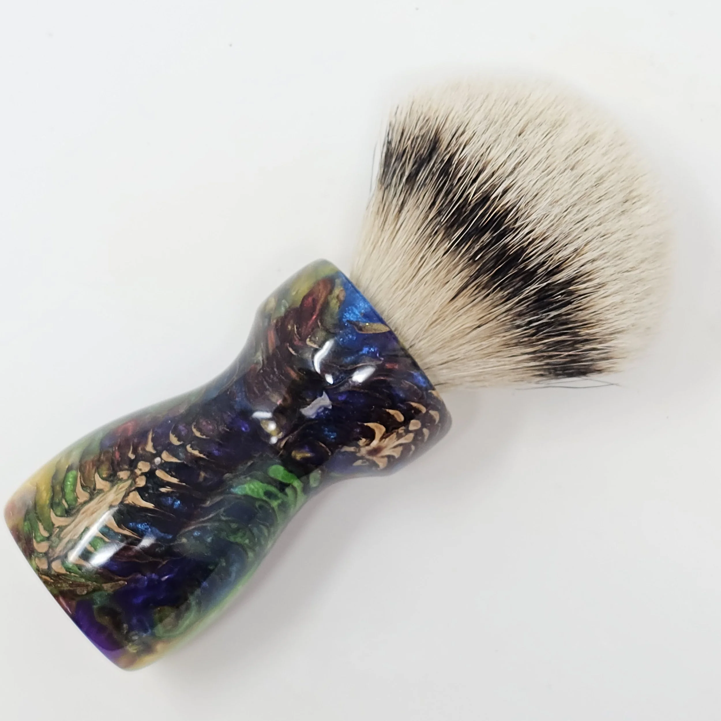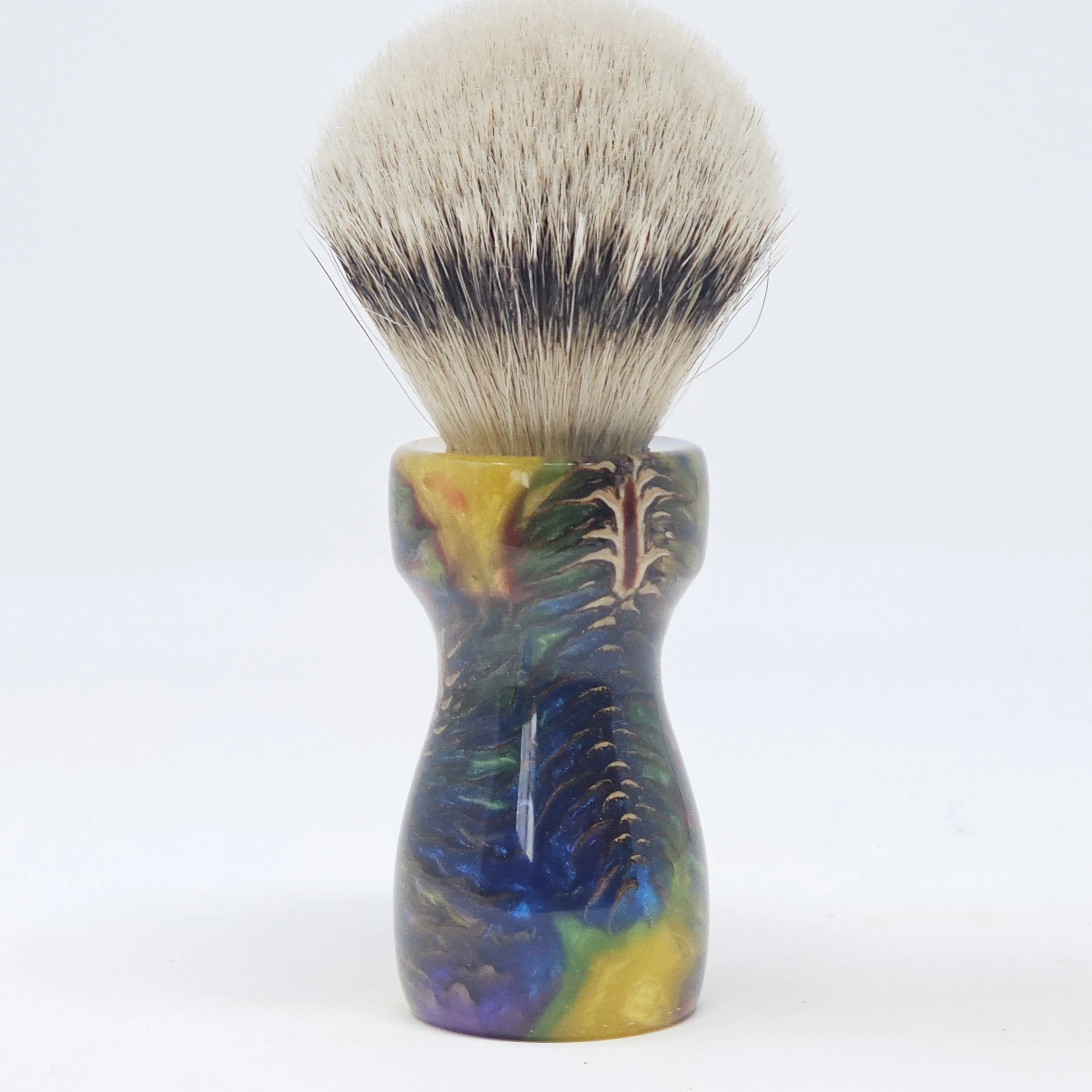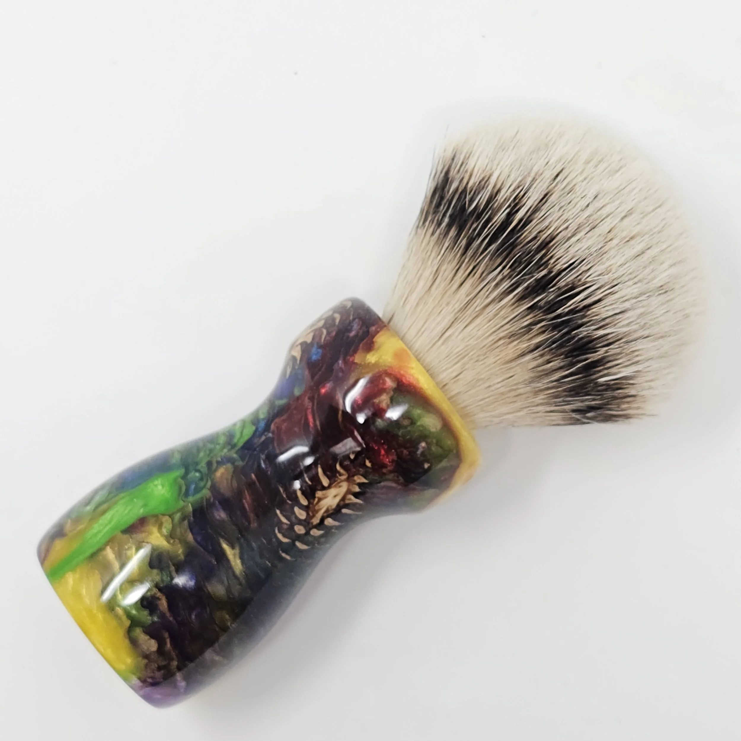 Handcrafted from real pine cones suspended in a vibrant swirl of rainbow resin, the Prism Pine brings the wild beauty of nature together with bold, modern color. This is a one-of-a-kind shaving brush... never to be duplicated!